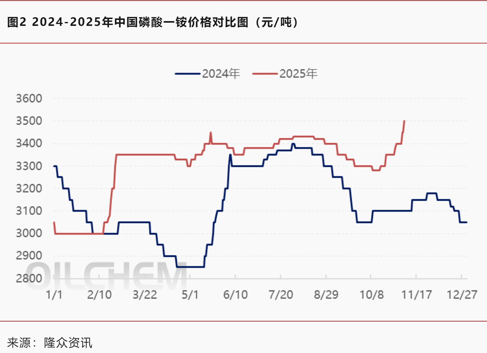 硫磺、硫酸核心原料价格的急剧攀升,令磷酸一铵生产企业面临显著成本压力。以全部外采硫磺、28品位磷矿石测算,当前湖北地区磷酸一铵完全生产成本已突破4000元/吨;以外采冶炼酸、28品位磷矿石测算,当前湖北地区磷酸一铵完全生产成本超过3600元/吨,成本端承压持续加剧。为规避成本波动风险,多家工厂陆续采取停售、暂停报价措施,进一步收紧市场供应。价格方面,华中地区55粉磷酸一铵出厂价报3500-3550元/吨,较前期上涨100-150元/吨,部分企业待发订单充足,市场跟涨情绪浓厚。回顾全年,硫磺价格的多轮波动已多次引发磷酸一铵市场价格联动调整。