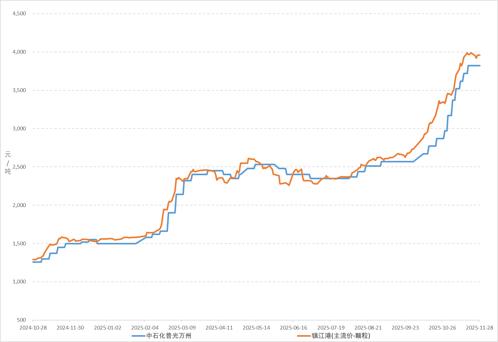11月,港口硫磺市场价格大幅上涨,继续刷新年内高位;截至11月28日,镇江港颗粒硫磺价格3960元/吨,环比上涨500元/吨,涨幅14.45%。