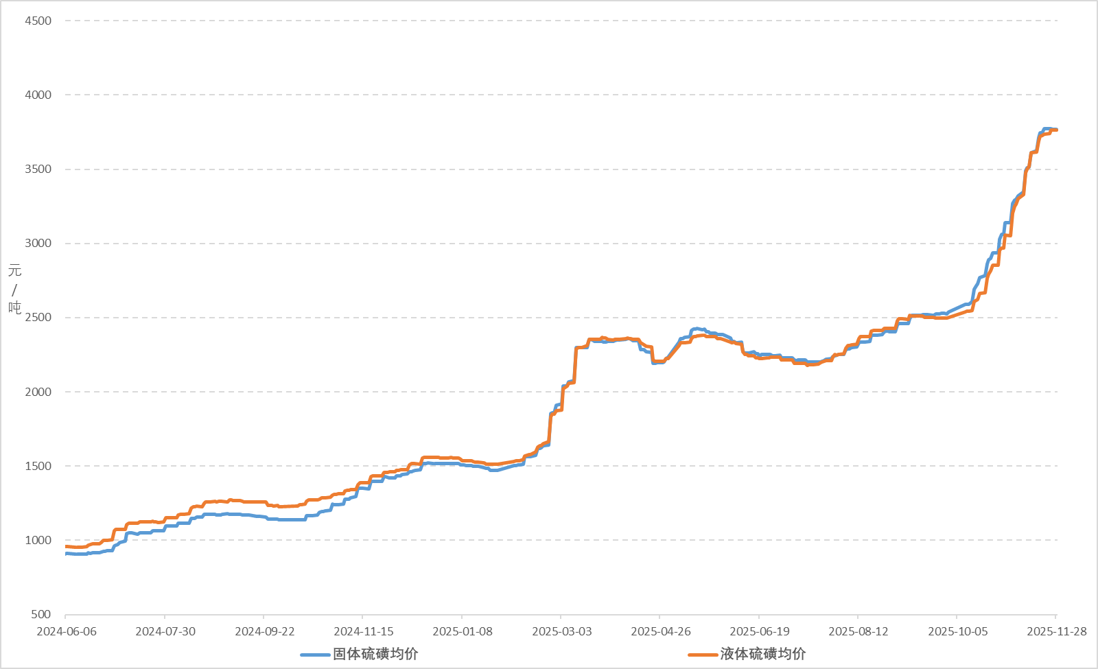 11月,国内硫磺市场均价继续宽幅走高。