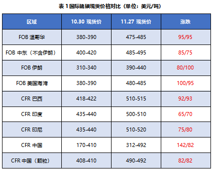 11月,国际硫磺市场价格持续飙升。