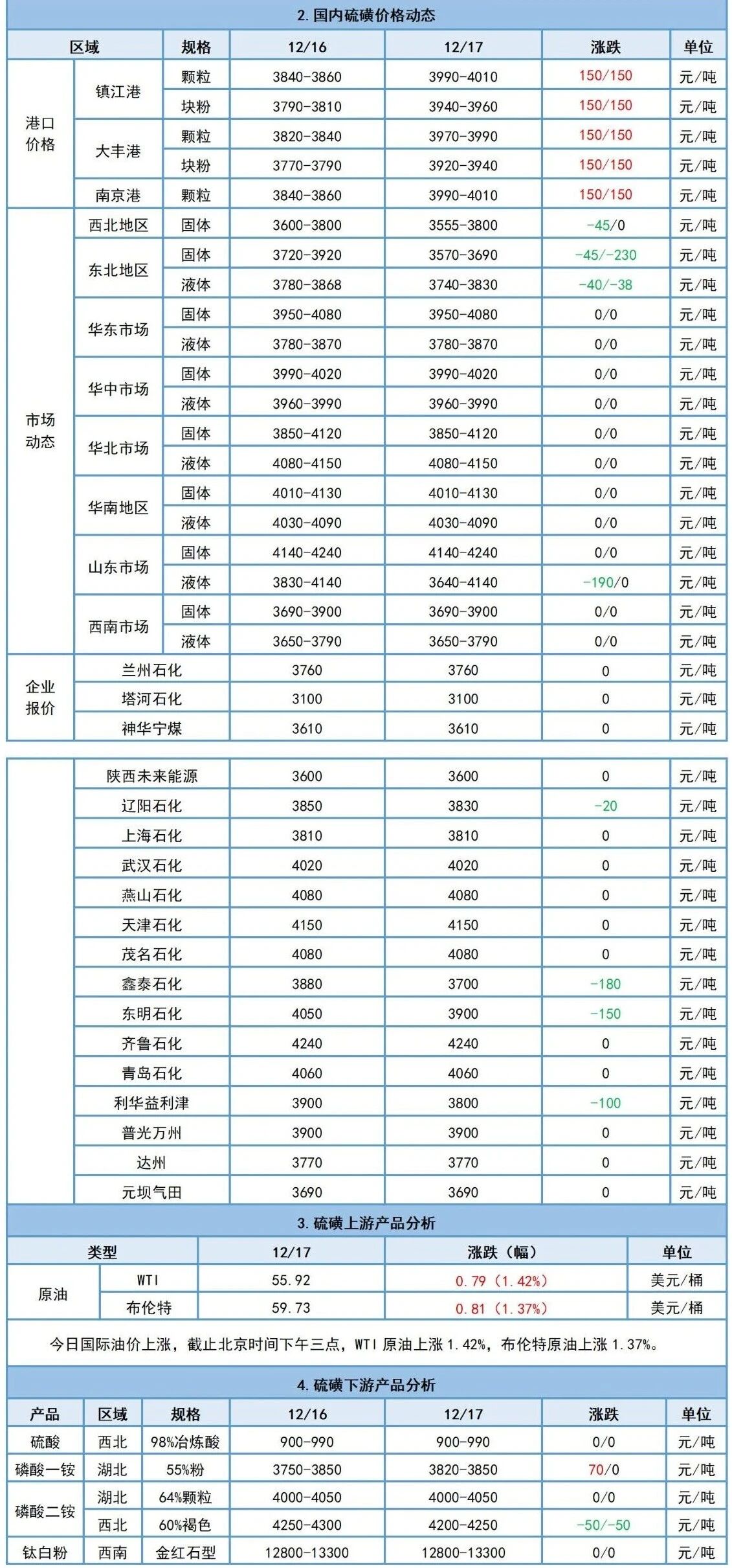12月17日硫磺日评:国产硫磺价格局部下行,港口硫磺价格涨势明显