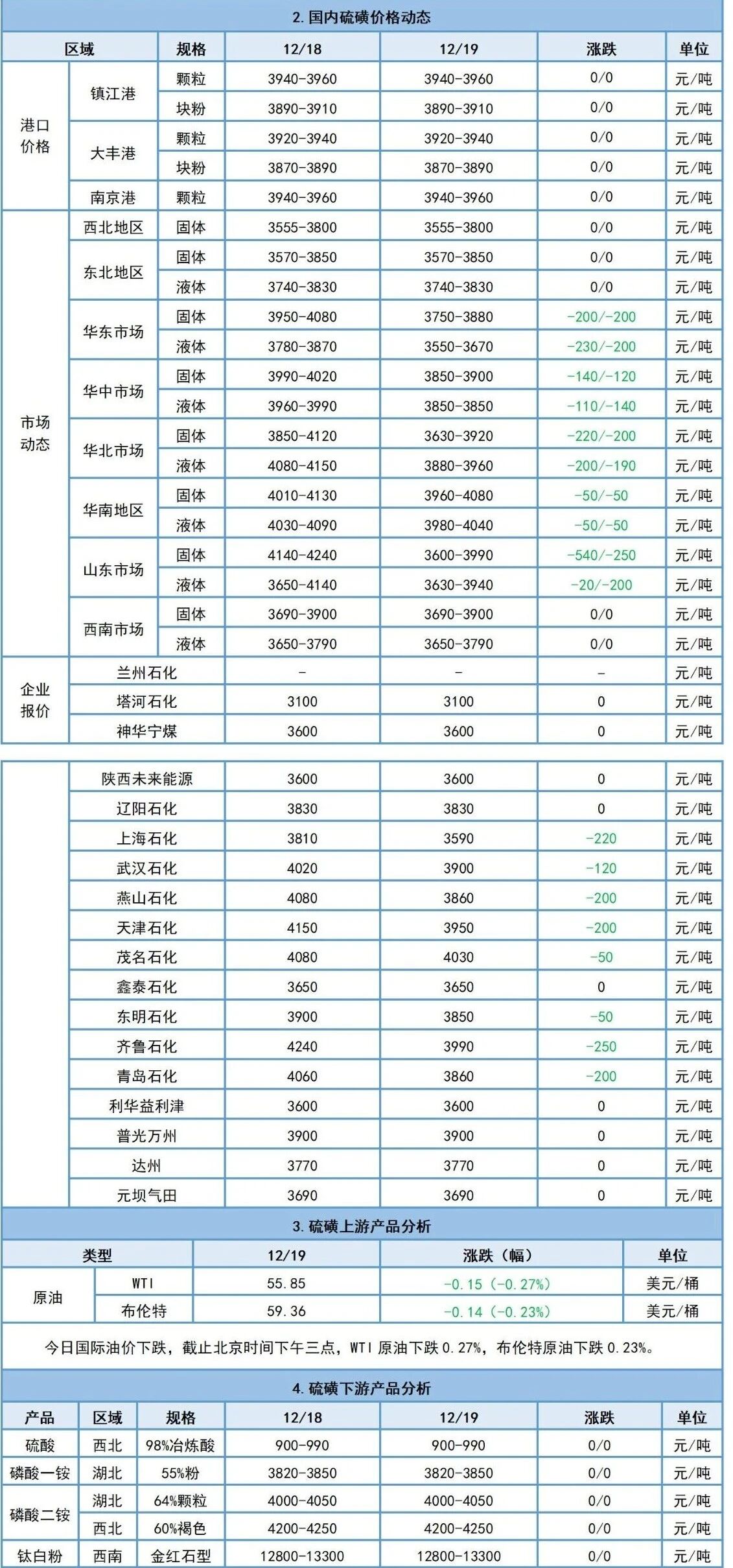 12月19日硫磺日评:国产硫磺价格大势下行,港口硫磺价格以稳呈现