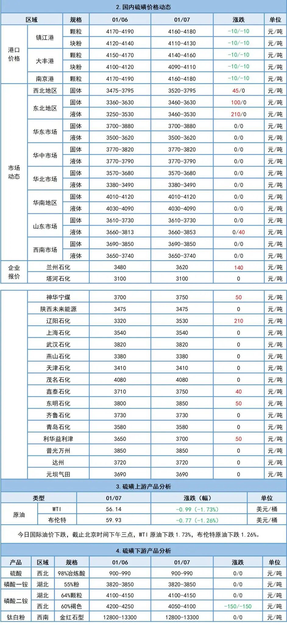 1月7日硫磺日评:国产硫磺价格稳中上行,港口硫磺价格小幅下跌