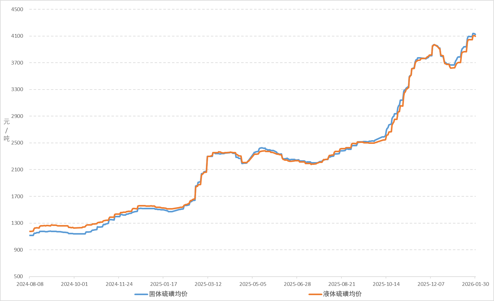 2026年1月,国内硫磺市场均价继续宽幅走高。