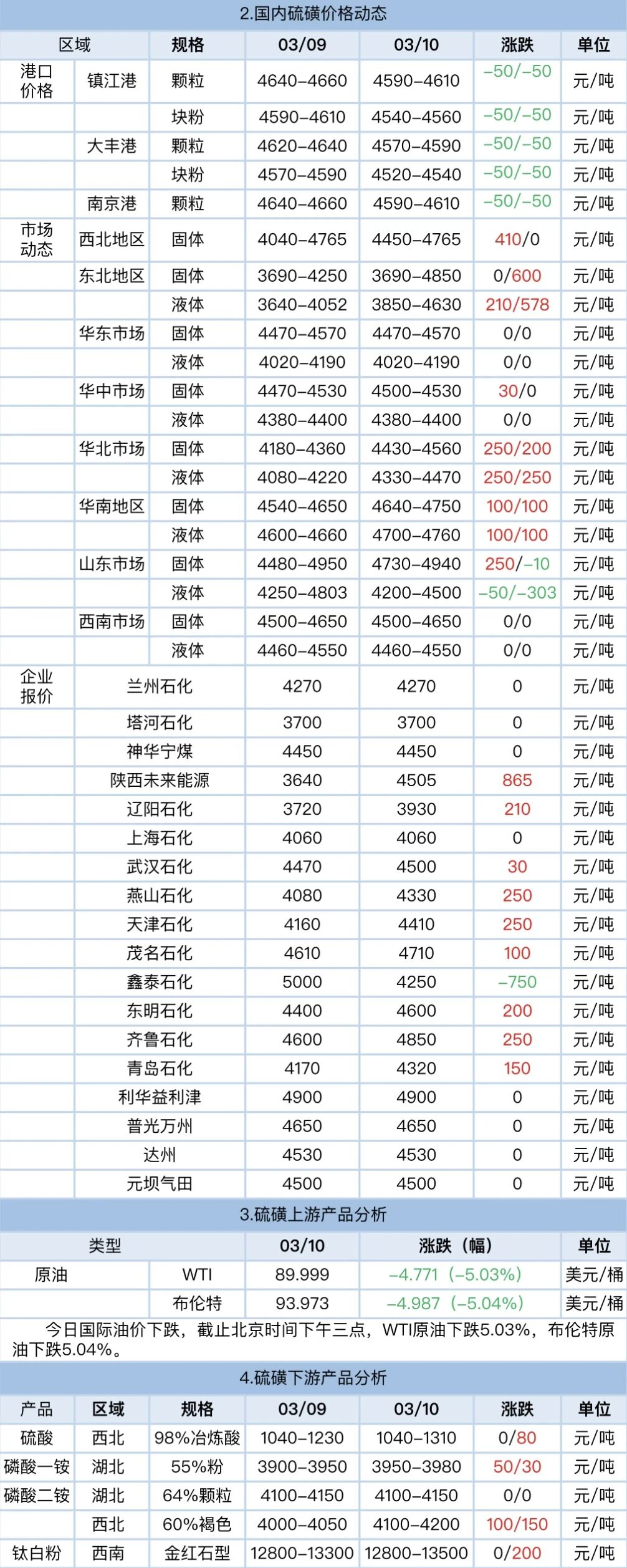 2026年3月10日硫磺日评:国内硫磺价格涨跌互现,上行为主