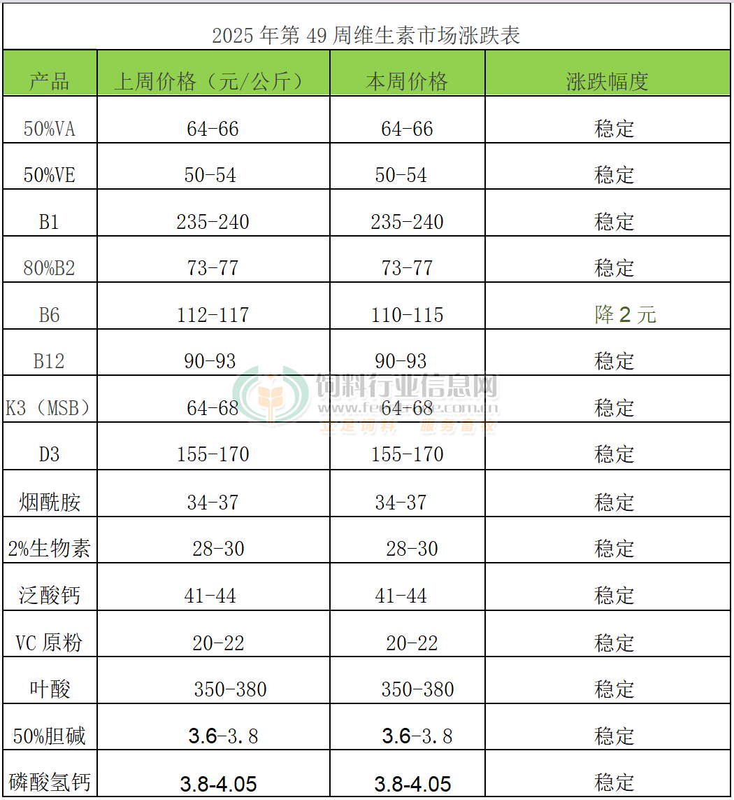 2025年第49周添加剂涨跌榜