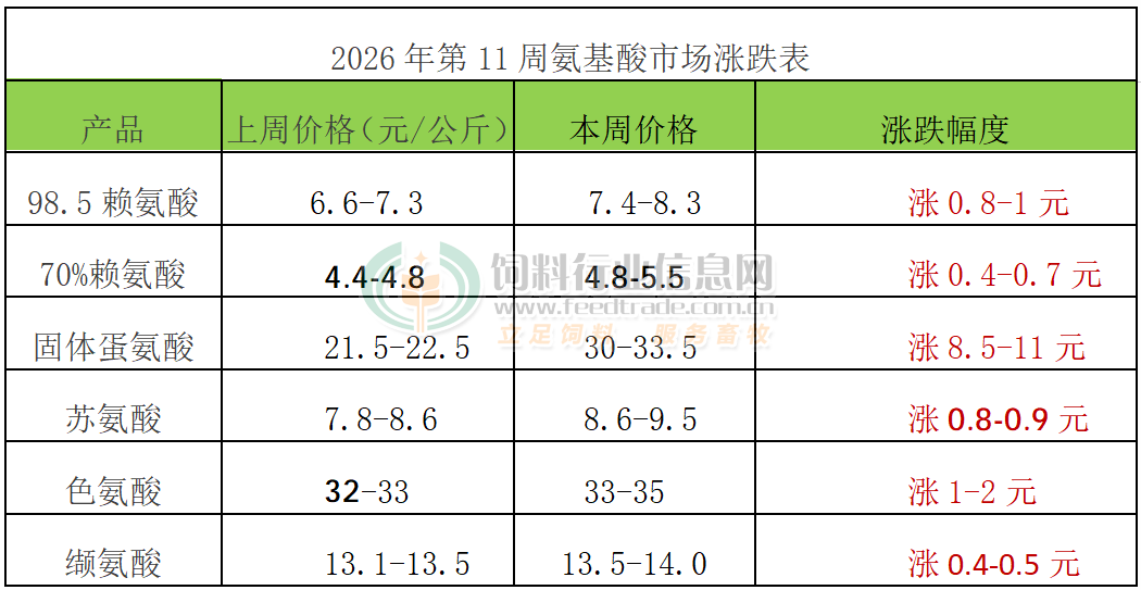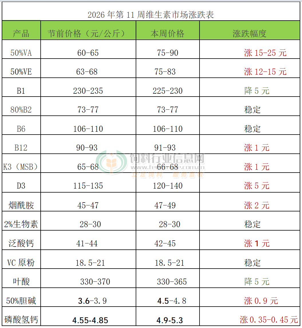 2026年第11周添加剂涨跌榜