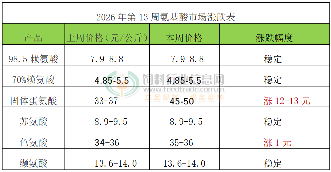 2026年第13周添加剂涨跌榜