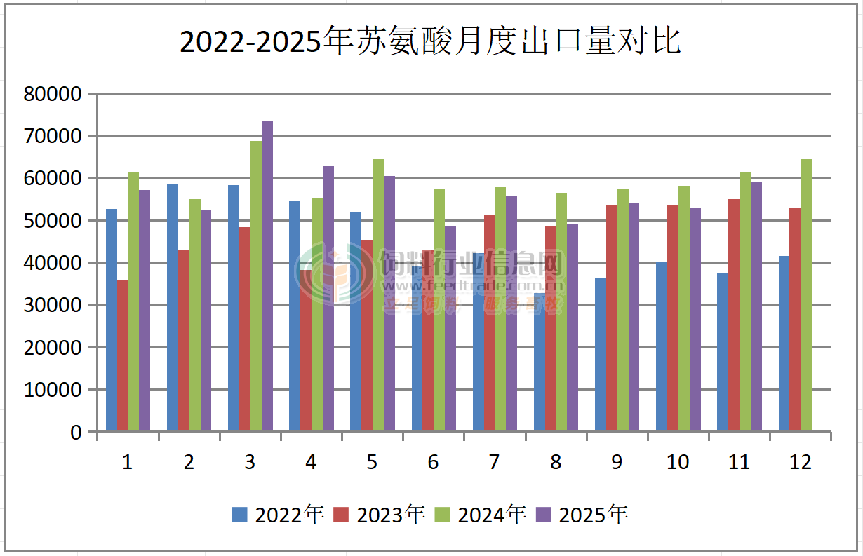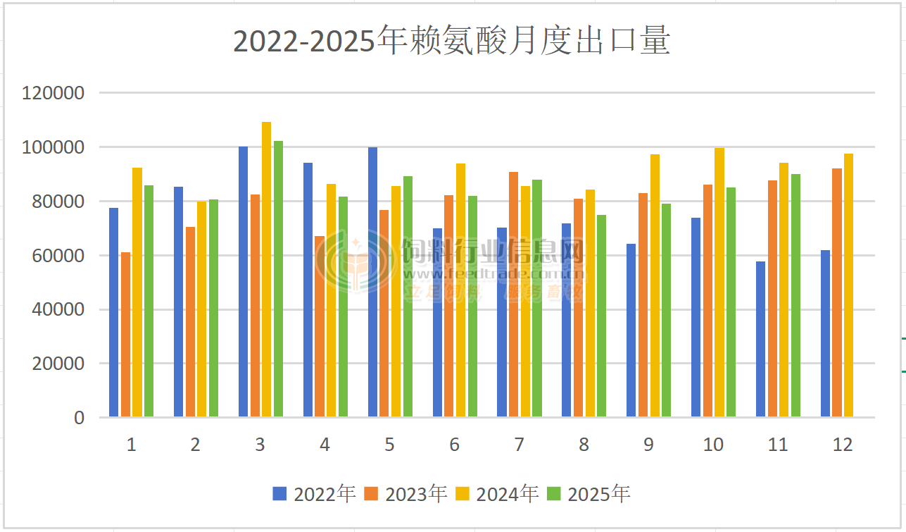 2025年11月我国赖氨酸、苏氨酸出口量同比下降,环比增加