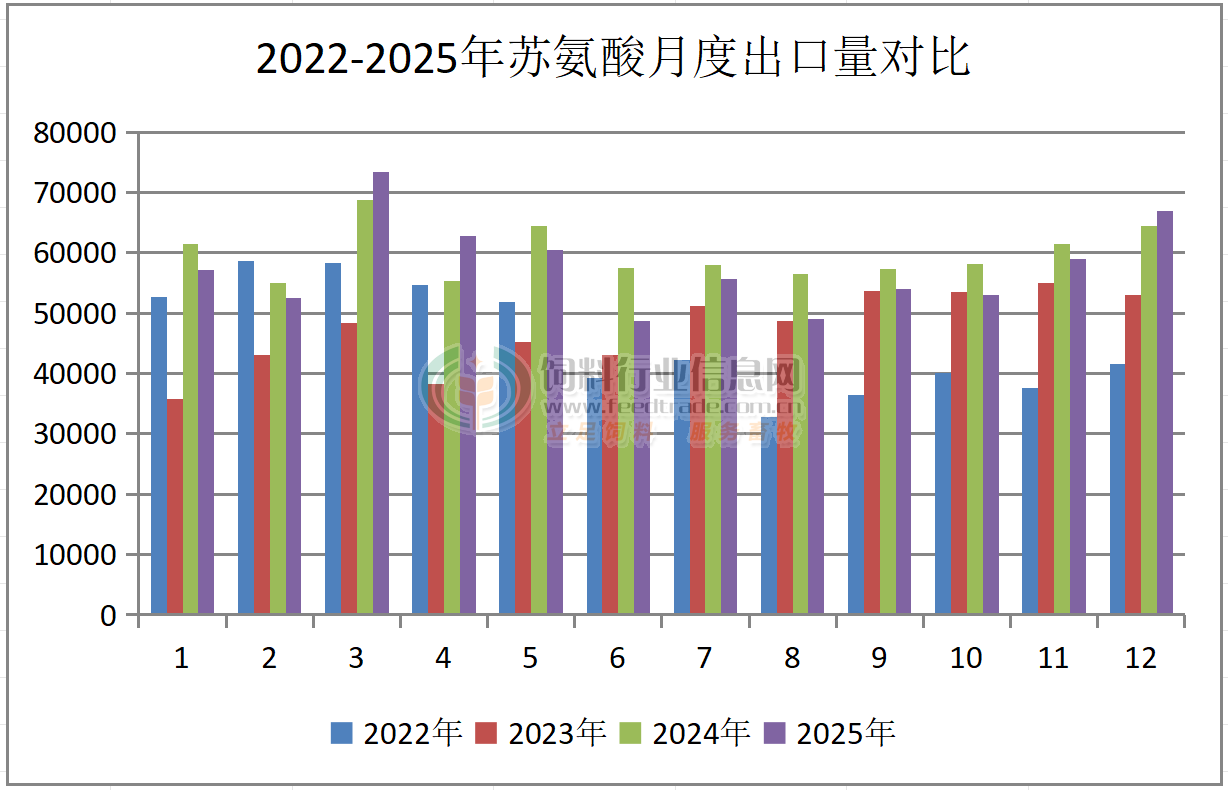 2025年12月我国赖氨酸、苏氨酸出口量继续增长