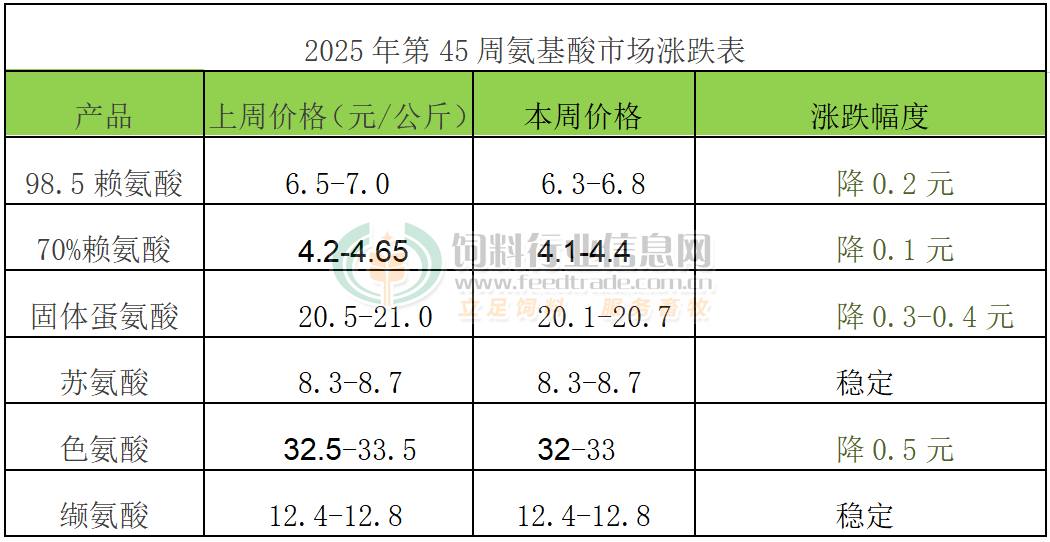 2025年第45周氨基酸市场动态