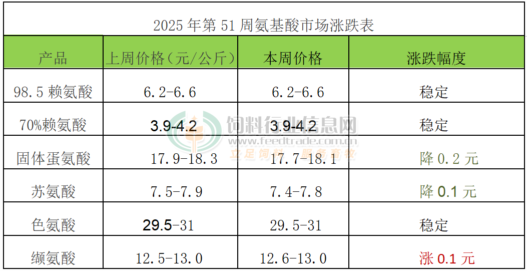 2025年第51周氨基酸市场动态