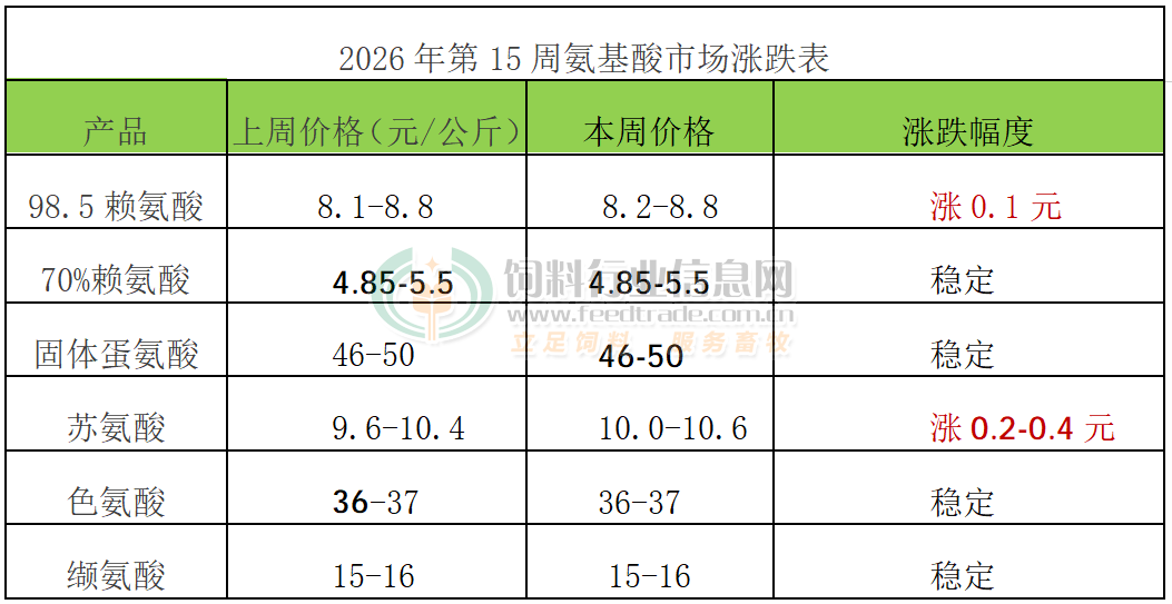 2026年第15周氨基酸市场动态