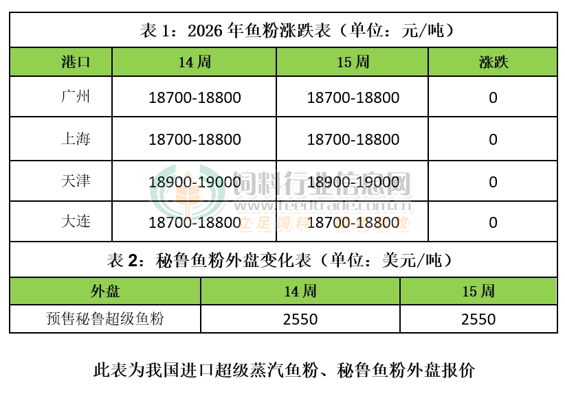 国内进口鱼粉市场,价格坚挺持稳,其中秘鲁超级蒸汽鱼粉价格集中在18700-19000元/吨。由于秘鲁中北部A季配额偏中性、外盘坚挺、国内鱼粉持货商持货集中、港口鱼粉库存虽然增加但是比较缓慢,并且水产需求逐步增加等因素支撑下,国内大多数鱼粉持货商继续保持挺价意愿。截止目前港口鱼粉库存在15.69万吨。同时国产鱼粉价格坚挺持稳,其中山东荣成地区63%蛋白TVN150的国产鱼粉参考报价在15800元/吨,成交议价为主。短期鱼粉价格整体继续高位整理。