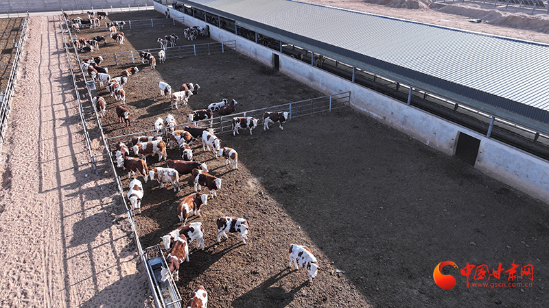 在发展肉牛养殖的同时,临泽县积极探索绿色发展新模式,让养殖与环保相得益彰。在甘肃汇泽肉牛养殖场,4座标准化牧光互补牛舍的顶棚及支架上,4.3兆瓦分布式光伏板整齐排列,电流经11台逆变器转化后,源源不断汇入国家电网,实现了“顶上光伏发电、棚舍内养殖”的双赢格局,让“闲置棚顶”成功变身“绿电生产线”。