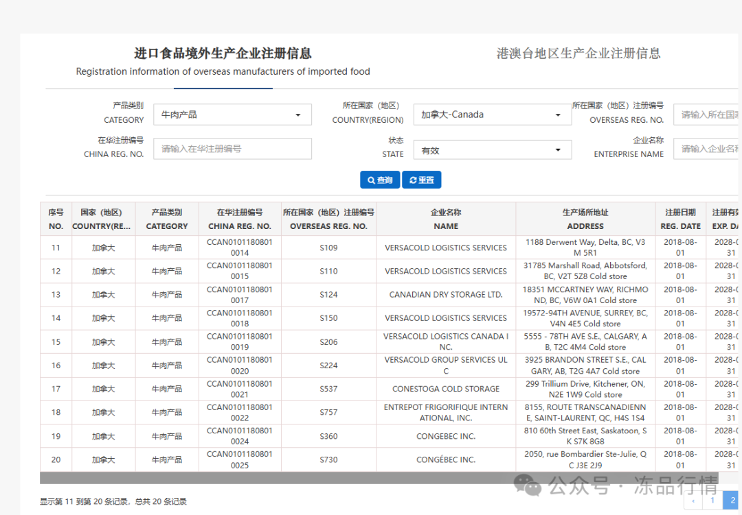 值得关注的是,本次牛肉出口恢复仅涉及准入资格重启,不涉及反倾销或保障措施调整。目前中国对加拿大牛肉未启动任何保障措施调查,而结合2026年1月1日起实施的进口牛肉国别配额管理政策,加拿大牛肉将通过通用配额渠道进入中国市场,与其他进口来源地形成良性竞争 。海关总署于1月16日更新的输华肉类名单显示,当前加拿大共有24家牛肉相关工厂纳入监管,其中20家处于正常输华状态,4家已注销,本次恢复的注册编码93号工厂(嘉吉旗下企业)更是被确认将承担首批输华订单,预计1月下旬起运 。