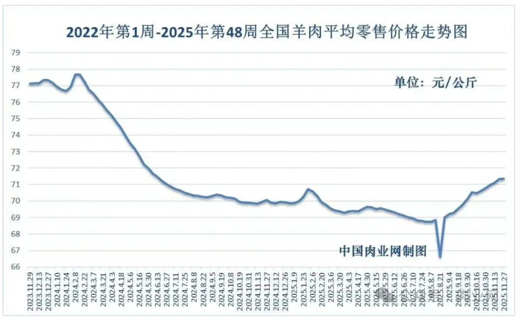 2025年12月11日全国羊肉均价走势分析