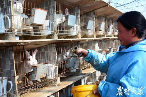 孙志云在给兔子加料。