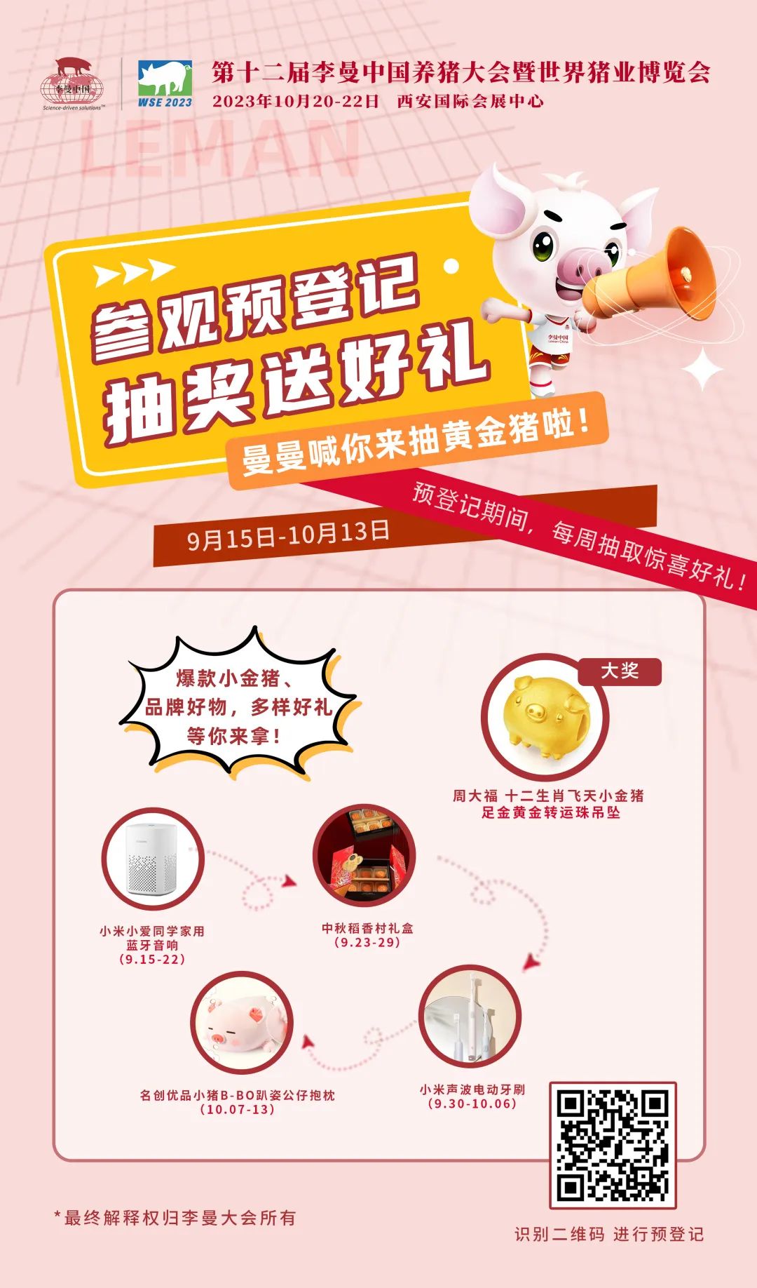 宠粉福利 | 李曼大会观众预登记抽奖全面启动,礼品周周送,黄金猪、蓝牙音响…等你来!