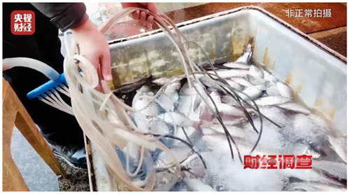 央视《财经调查》记者调查发现,在西南片区规模较大的重庆乐邦水产市场里,大量长途运输的活鱼抵达后呈“休眠”状态,在水中安静似死鱼,充氧片刻便恢复正常,商贩统一称鱼儿在“睡觉”。