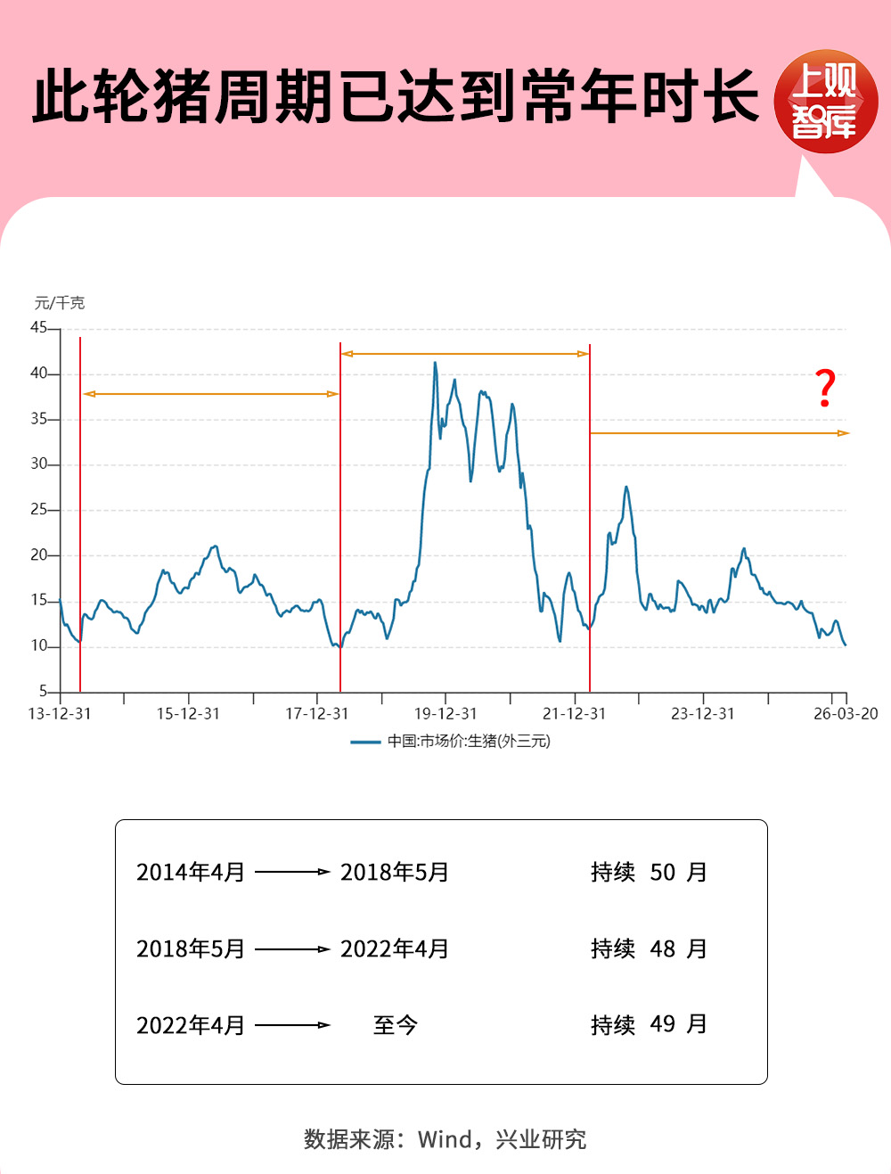本轮周期自2022年末由高点回落后,到2026年4月,持续了49个月,达到了常年的周期时长。