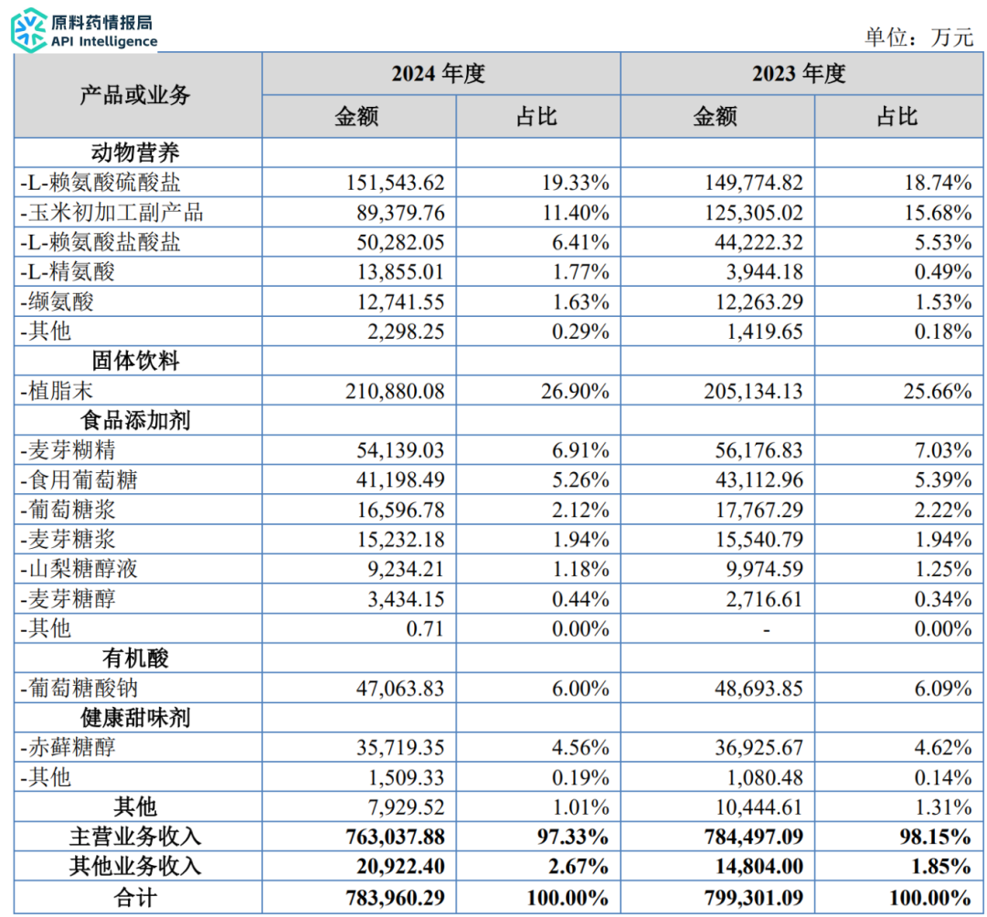 年玉米深加工能力达170万吨,具体产品包括L-赖氨酸盐酸盐、L-赖氨酸硫酸盐、植脂末、赤藓糖醇、麦芽糊精、麦芽糖浆、山梨糖醇、食用葡萄糖等。主要客户主要为国内大型食品饮料企业,如元气森林(北京)食品科技集团、香飘飘食品股份、四川蜀味茶韵供应链、长寿花食品股份、牧原食品股份等;海外贸易客户ANSI GLOBAL CORPORATIONPTE.LTD.等。