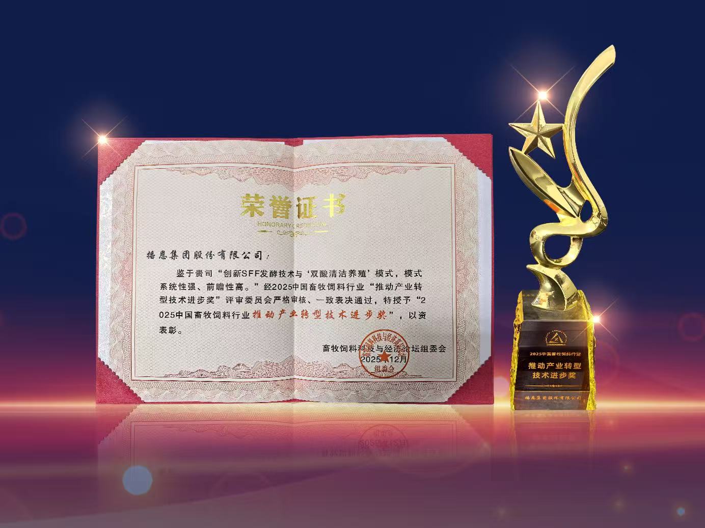 12月4日至7日,2025中国畜牧饲料行业饲料经济高层论坛成功举办。播恩集团凭借在生物技术赋能健康养殖领域的持续探索及实践成果,荣获“推动产业转型技术进步奖”,这是行业对企业技术创新与产业赋能价值的高度认可。