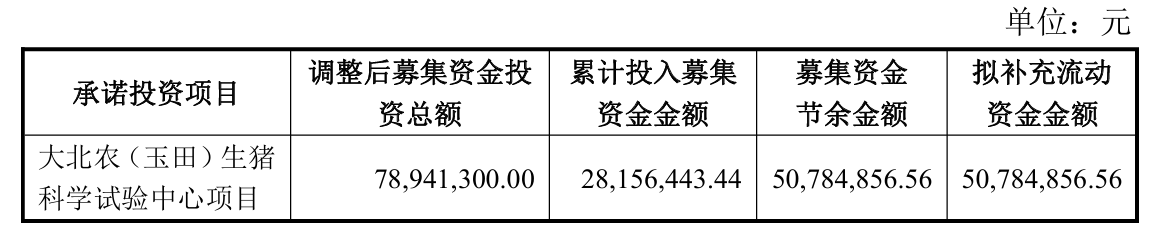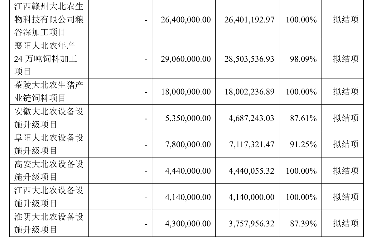 其中,公司拟终止的募投项目为“大北农(玉田)生猪科学试验中心项目”,截至2025年12 月31日已累计投入2815.64万元,投入进度为35.67%。