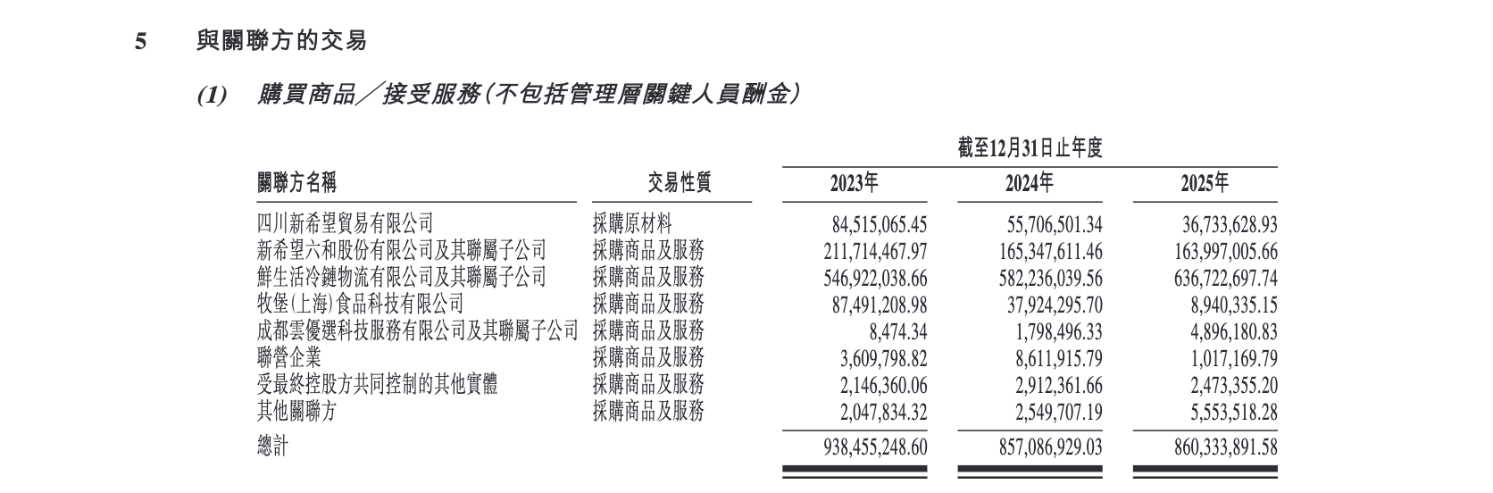 此外,新希望乳业尽管是独立上市的公司,但其也依赖新希望集团的生态。2025年,公司向关联方购买商品/接受服务8.6亿元。