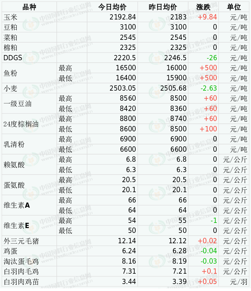 白羽肉毛鸡价格上涨。短期内鸡源尚且充裕,供应对价格存在一定支撑。但屠企走货欠佳,处于持续垒库状态,宰杀意愿一般,预计短期内毛鸡价格或仍以稳定为主。今日主产区山东白羽肉毛鸡均价7.10元/公斤,较昨日价格上涨0.10;辽宁均价7.28元/公斤,较昨日价格上涨0.10;主销区江苏均价7.90元/公斤,较昨日价格上涨0.08。