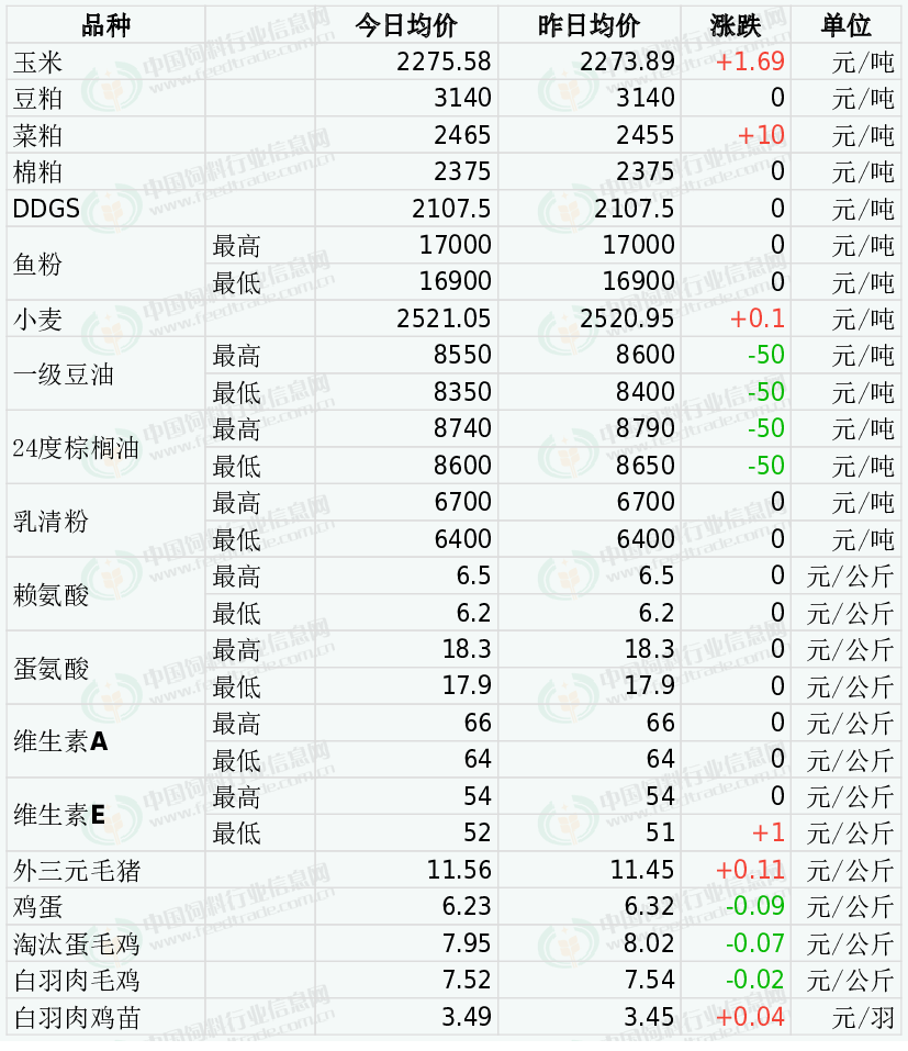 15日DDGS价格稳定。近期饲料企业仍有一定刚需,市场成交情况尚可,酒精企业出货压力减弱,DDGS库存压力预期有所缓解,但终端养殖需求一般, 下游库存回升继续采购情绪不高,DDGS价格稳定运行。预判12月份期间大多数时候DDGS交易价格总体继续偏弱震荡走势为主的可能性更大,下半月跌势放缓且不排除部分区域市场存在止跌回涨机会因其性价比提高消耗存增量潜力叠加玉米价格上涨导致的成本上涨影响,但12月份月度均价环比继续下跌的可能性更大。