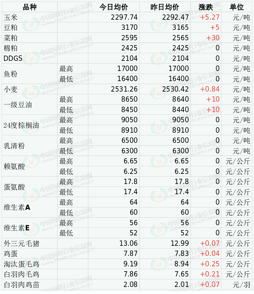 白羽肉毛鸡价格上涨。当前毛鸡供应整体稳定且主产区略有缺口,鸡苗因出苗量增加、养殖户补栏谨慎供大于求,节前终端备货加快带动白条鸡和冻品走货略有改善,短期预计毛鸡价格震荡调整。今日主产区山东白羽肉毛鸡均价7.53元/公斤,较昨日价格上涨0.20;辽宁均价7.95元/公斤,较昨日价格上涨0.20;主销区江苏均价8.64元/公斤,较昨日价格上涨0.22。