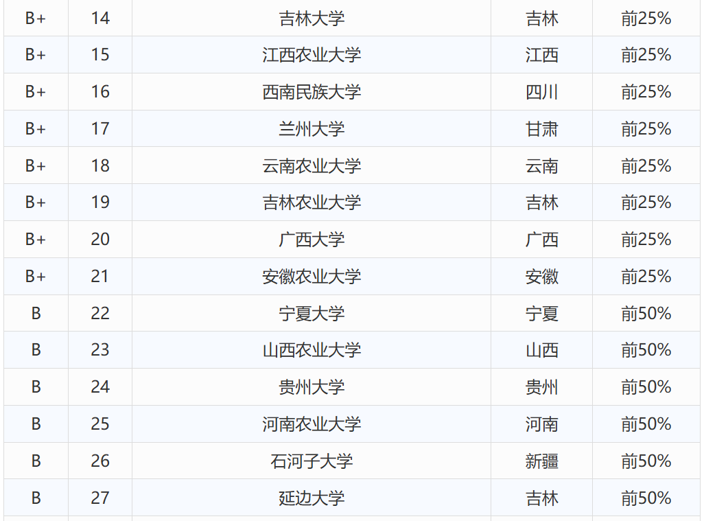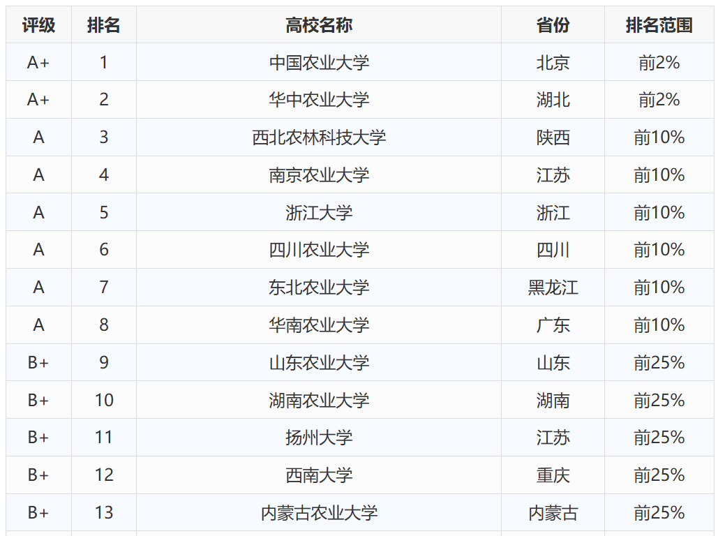 2025年动物科学专业大学排名及评级结果