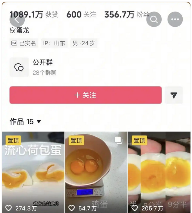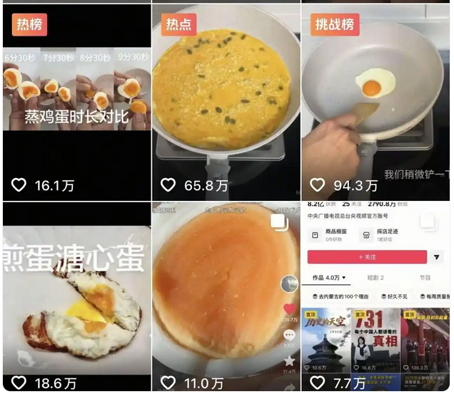 这个名为“爱吃蛋”的网友,就是冯先生。见大家如此关注,冯先生觉得拍视频分享自己的煮蛋经验。不同熟度的水煮蛋、平底锅做的漫画蛋、不散的荷包蛋、入口化的鸡蛋羹……从12月4日发布第一条视频,到12月11日,8天时间,15个视频,获赞上千万,粉丝从0直接飙升到356万,冯先生在小众赛道成功出圈。