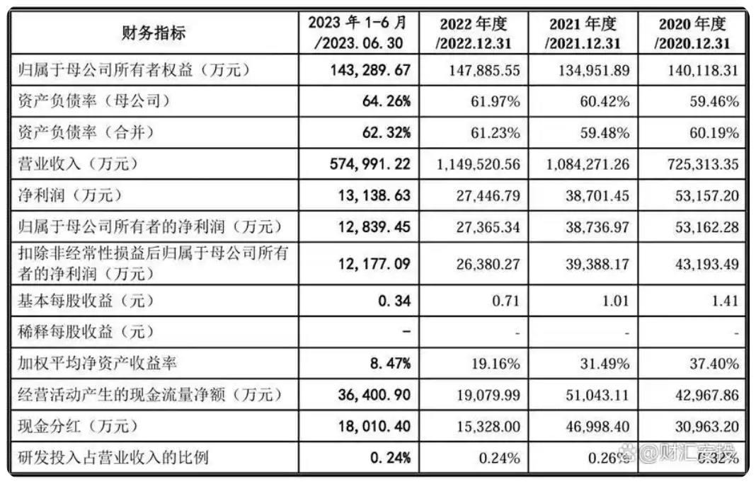 2020年度、2021年度、2022年度及2023年1-6月,公司营业收入分别为725,313.35万元、1,084,271.26万元、1,149,520.56万元和574,991.22万元;净利润分别为53,157.20万元、38,701.45万元、27,446.79万元和13,138.63万元;扣非归母净利润分别为43,193.49万元、39,388.17万元、26,380.27万元和12,177.09万元。报告期内,公司主营业务毛利率分别为15.72%、10.28%、8.55%和9.08%。