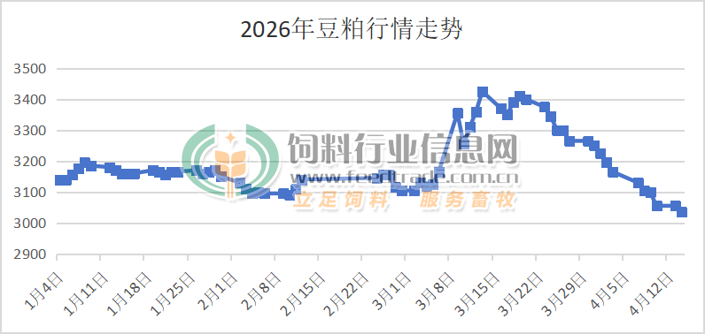现货豆粕均价为3035元,跌20元/吨。其中江苏地区价格为2950-3020元/吨,跌20-30元/吨。