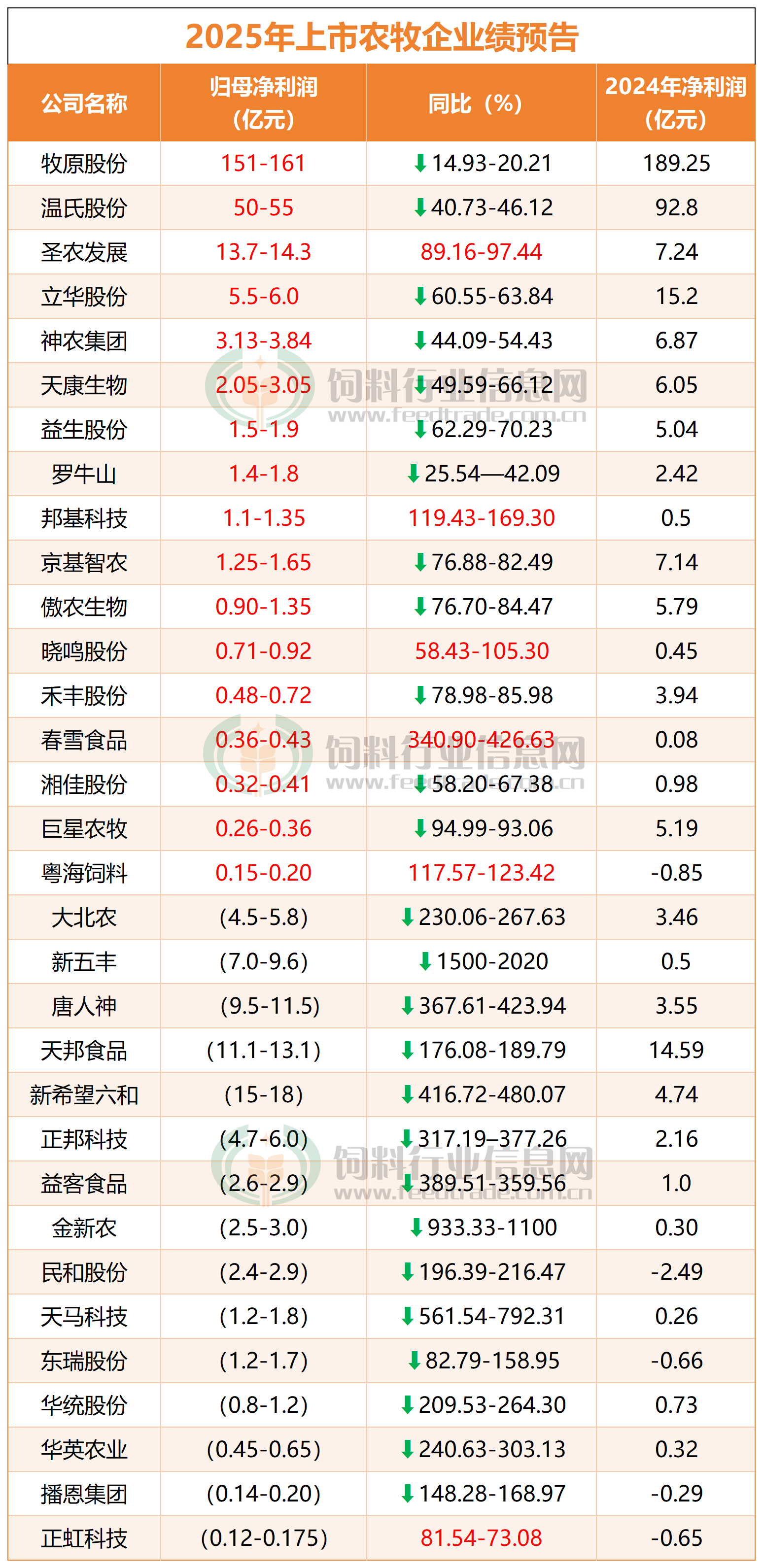 【5期】32家上市农牧企业2025年业绩预告,盈利企业仅占一半,最高亏损企业同比增加20倍