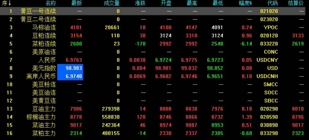 1月13日菜粕期货收盘最新行情动态