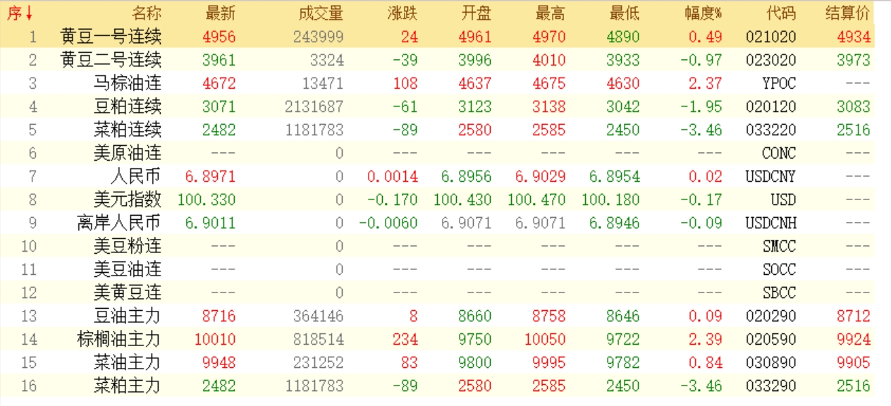 3月16日菜粕期货收盘最新行情动态