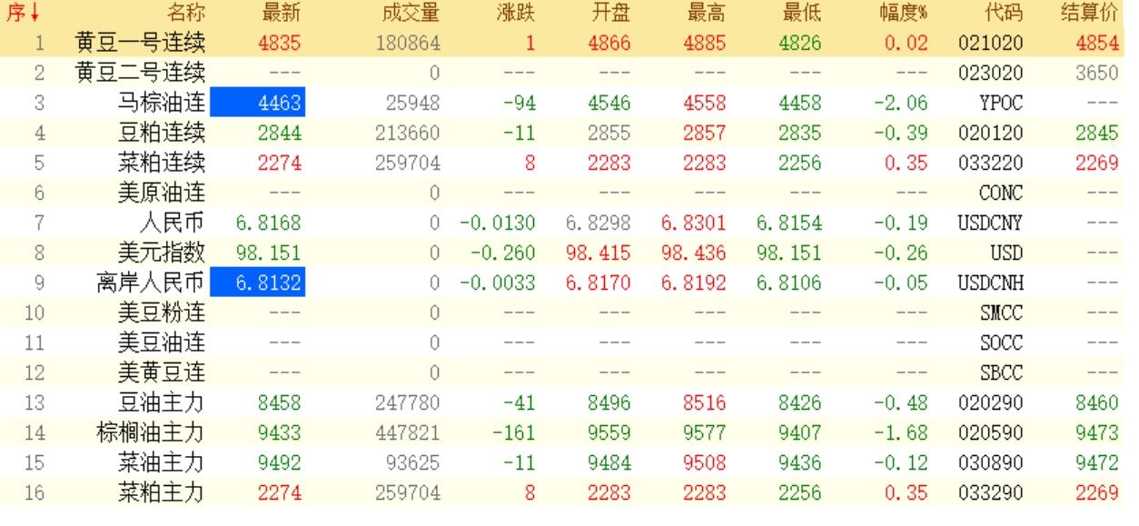 4月14日菜粕期货收盘最新行情动态