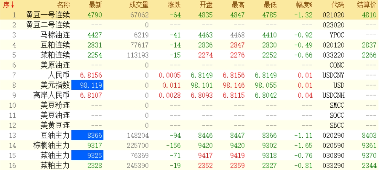 4月15日菜粕期货开盘最新行情动态