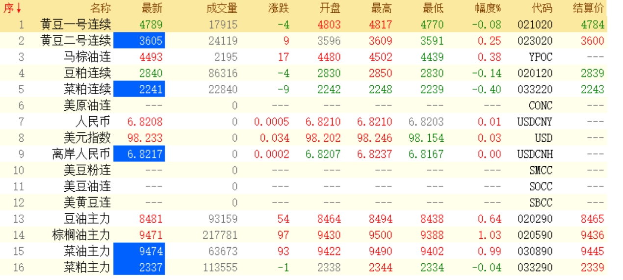 4月17日菜粕期货开盘最新行情动态