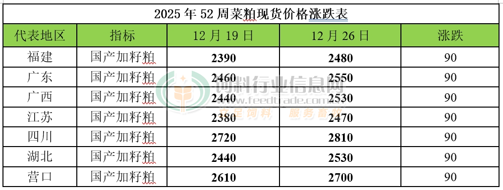 2025年第52周杂粕周报:菜粕价格上涨 棉粕波动有限