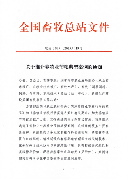 导语:关于推介养殖业节粮典型案例的通知