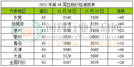 美盘大豆期价上行带动进口大豆价格上涨,对市场提供支撑,增强工厂对豆粕的挺价意愿,令豆粕价格跟随出现上行走势。不过目前油厂豆粕产量较大但出货有限库存继续增加,供应宽松限制豆粕价格上涨幅度。据饲料行业信息网统计数据显示,沿海地区43%蛋白豆粕价格为3107元/吨,较上一周上涨28元/吨。虽说进口大豆价格上行及下游需求逐渐增量支撑豆粕价格维持偏强运行,但美盘大豆上涨乏力,且豆粕产量大于需求数量后库存继续增加,供应宽松预期继续限制其上涨幅度。