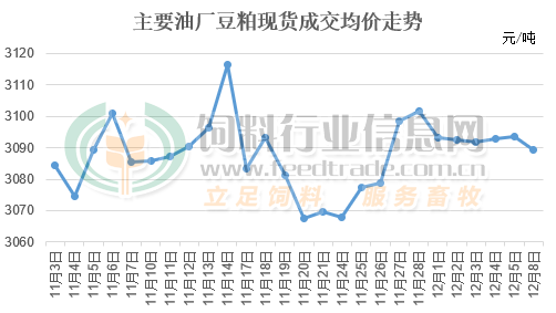 自12月以来,豆粕市场连续多日出现一动不动的走势,其中连盘豆粕期货M2601截止昨日收盘维持在3020-3060元/吨波动;而主要油厂43%蛋白豆粕成交均价自11月底开始出现了不温不火的走势,维持在3090-3110元/吨,上下波动幅度不超过20元/吨;即使成交数量出现了明显的增加,特别是上周五及昨日豆粕成交放量,单日成交超25万吨,也难改目前豆粕市场的颓势。