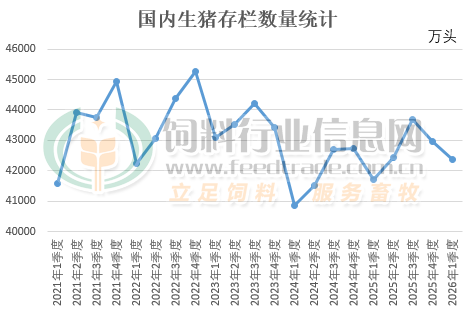 4月16日国家统计局发布2026年一季度国民经济运行情况,数据显示一季度生猪出栏20026万头,同比增长2.8%,为2015年以来的最高水平;猪肉产量同比增长4.2%;生猪出栏量如此之大,市场在春节过后逐渐清淡,猪肉产量较大但需求整体有限,这也是为何生猪价格持续下行,猪肉价格也不断跟随下探的直接原因。季末生猪存栏42358万头,增长1.5%;全国生猪存栏数量已经连续第二个季度下滑,较前期2025年三季度末的高点减少1322万头,但目前的生猪存栏数量仍是近三年同期的最高水平。
