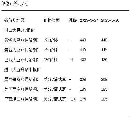 3月27日进口大豆到国内港口C&F及升贴水报价