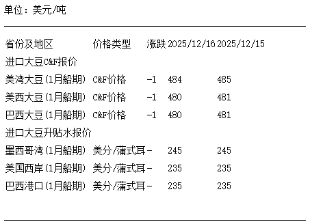 12月16日进口大豆到国内港口C&F及升贴水报价