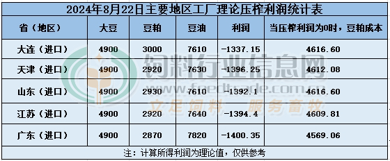 2024年8月22日大豆压榨利润日报
